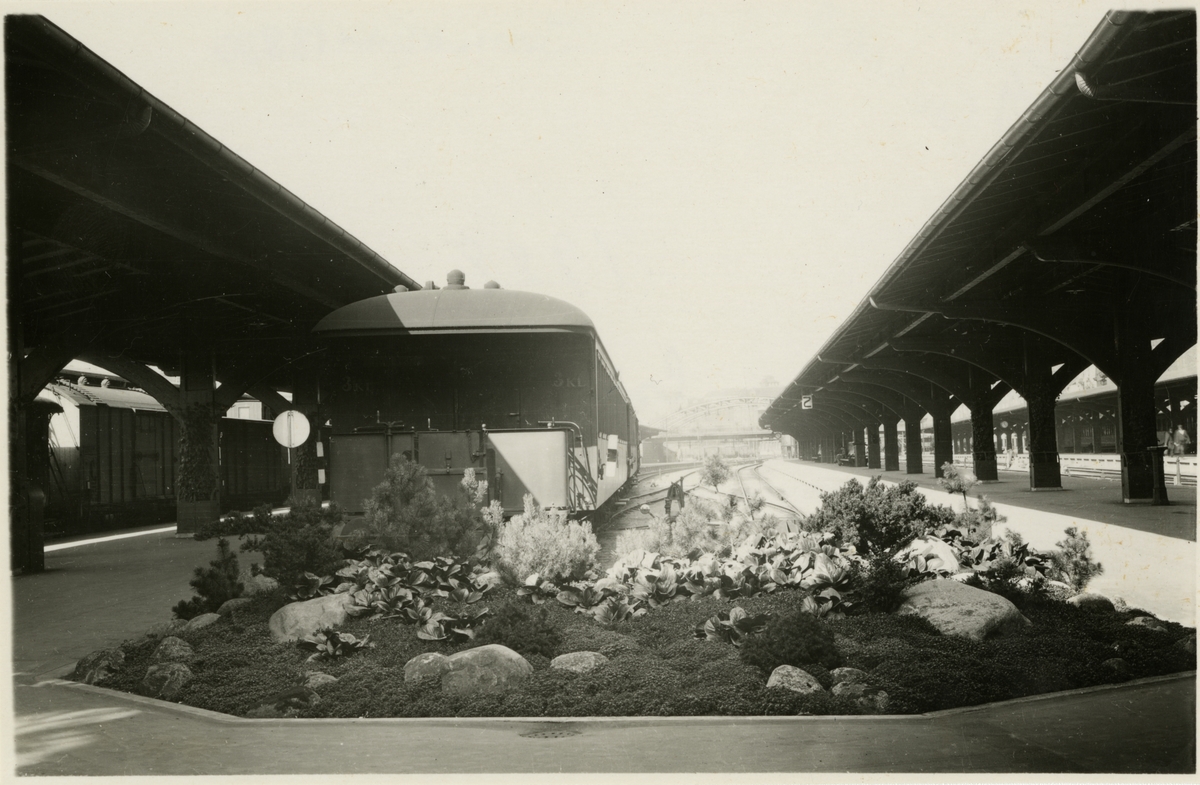 Titel: Stenparti vid stoppbockarna på Stockholms Central.