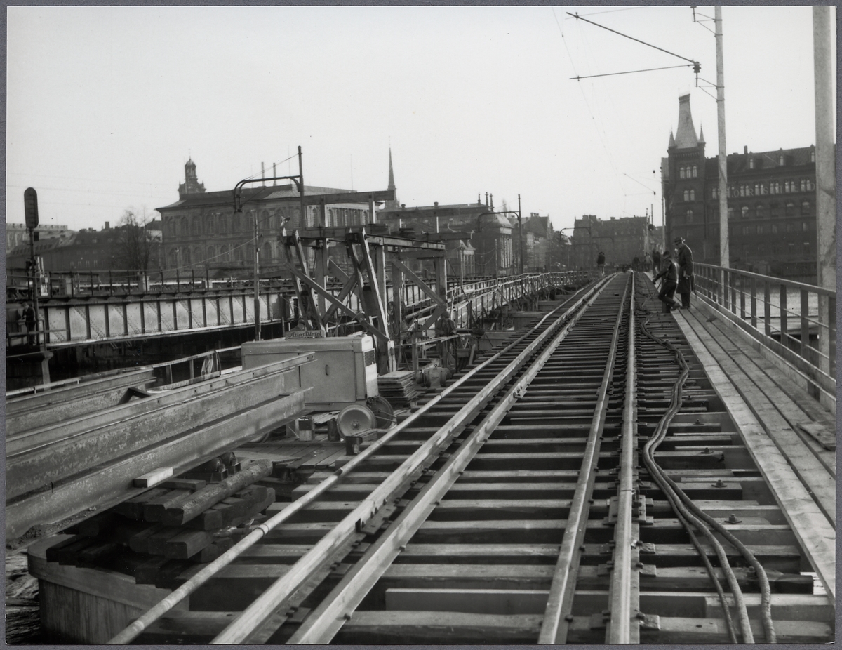 Byggarbeten på nya bron över Riddarfjärden. Sträckan mellan Stockholm C och Riddarfjärden.