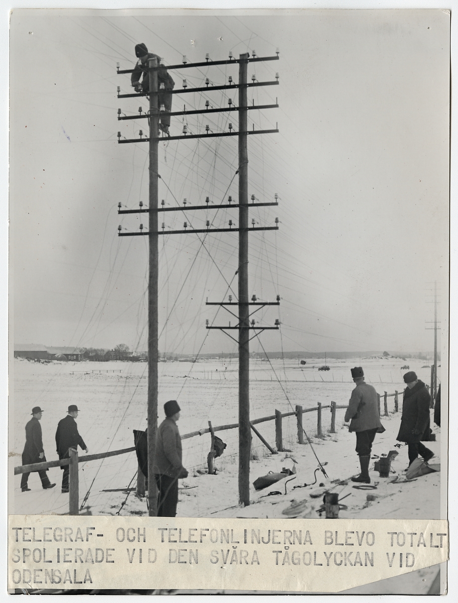 Lagning av Telegraf- och telefonlinjen, efter en tågolycka vid Odensala.