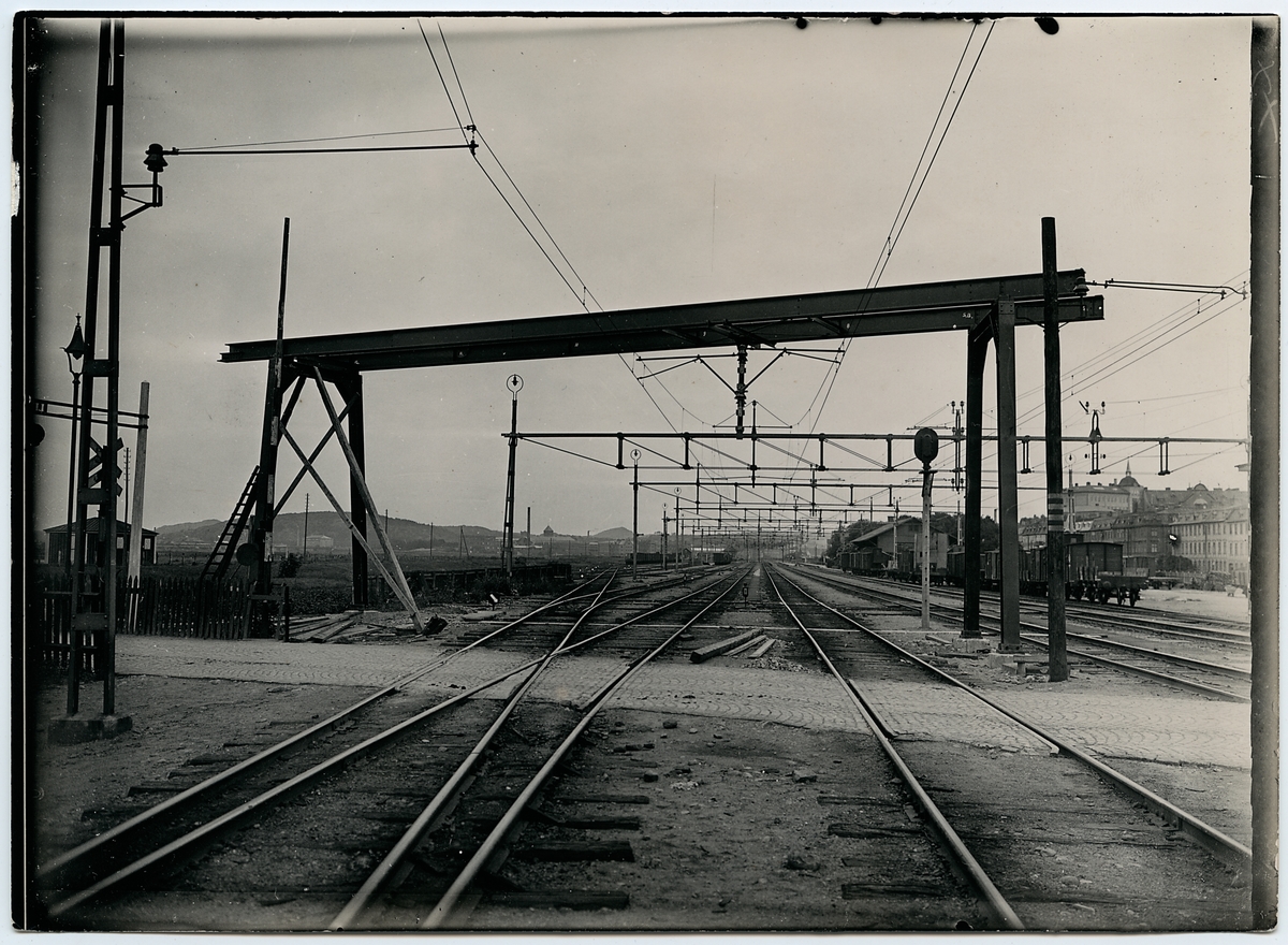 Gångbro under konstruktion, balkar över spåren 3,4 och 5