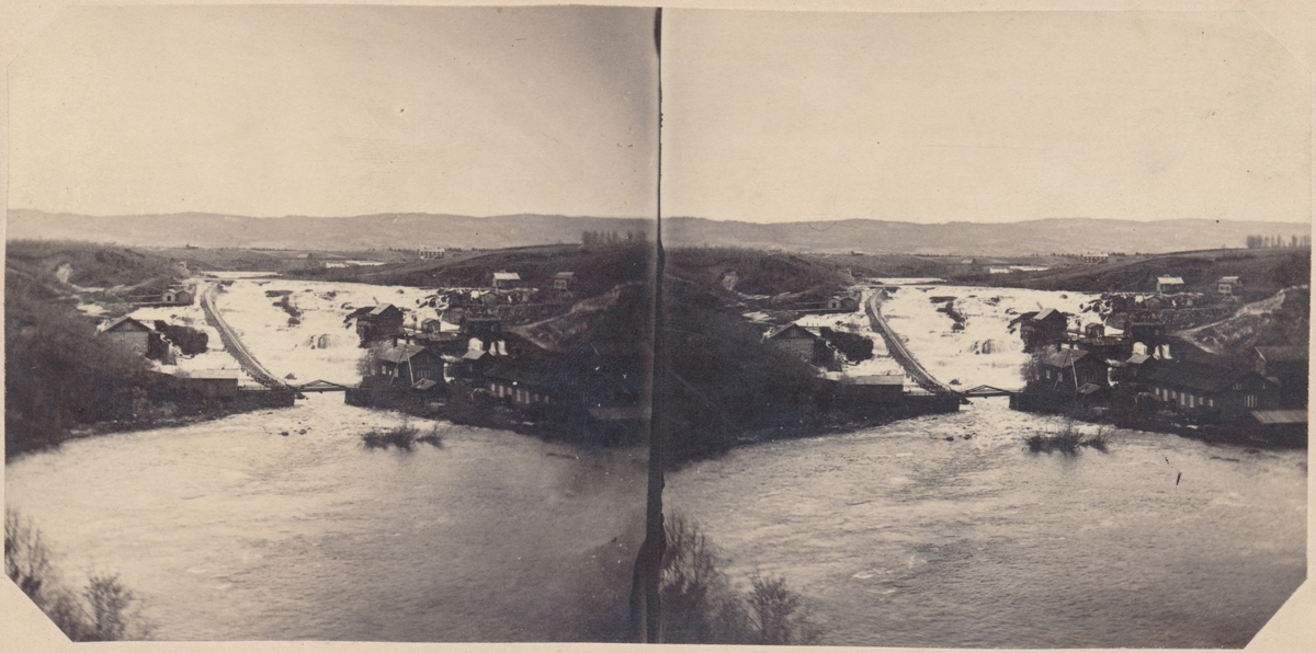 Titel: Stereoskopi av vattenfall vid Rottneros.