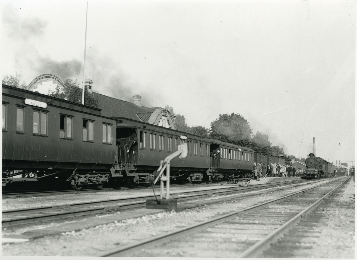 Personvagnar GDJ med skylt Gävle C. Gävle Dala Järnväg, GDJ H3 73.