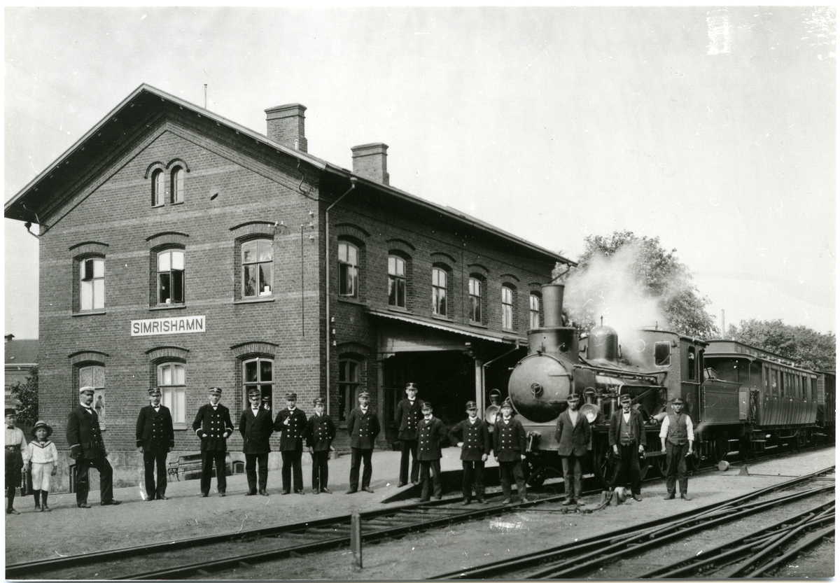 Titel: Simrishamn station med personal. MSJ lok 15.