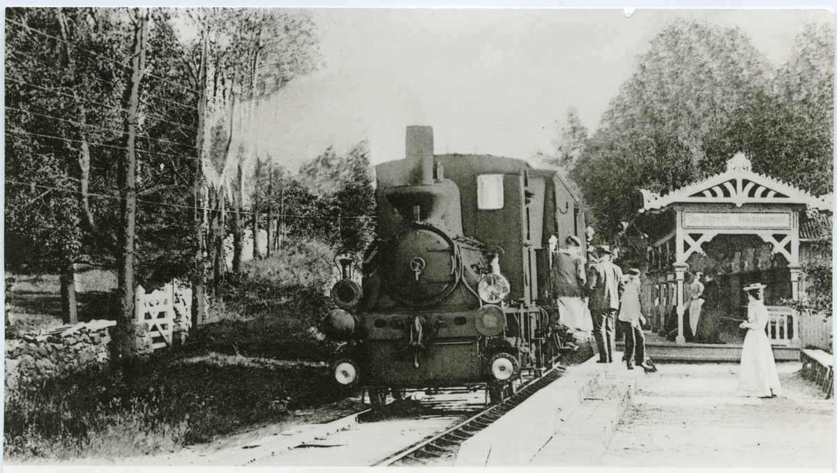 Skogsryds restaurangsstation med Borås Herrljunga Järnväg, BHJ Lok 5.