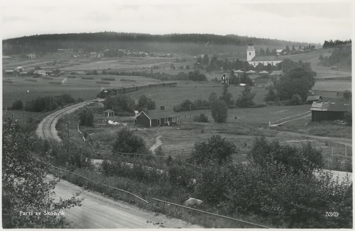 Vy över Skönvik med Ostkustbanan, OKB.