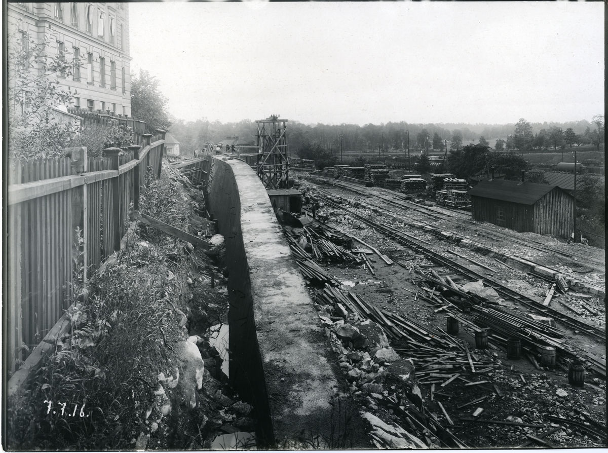 Stödmur vid blindinstitutet rivning av formarna. Linjen Tomteboda - Hagalund.