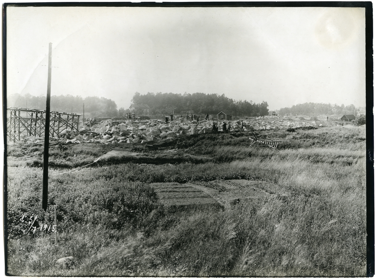 Stockholm Västerås Bergslagen, SWB banken efter sprängningen. Linjen Tomteboda - Hagalund.