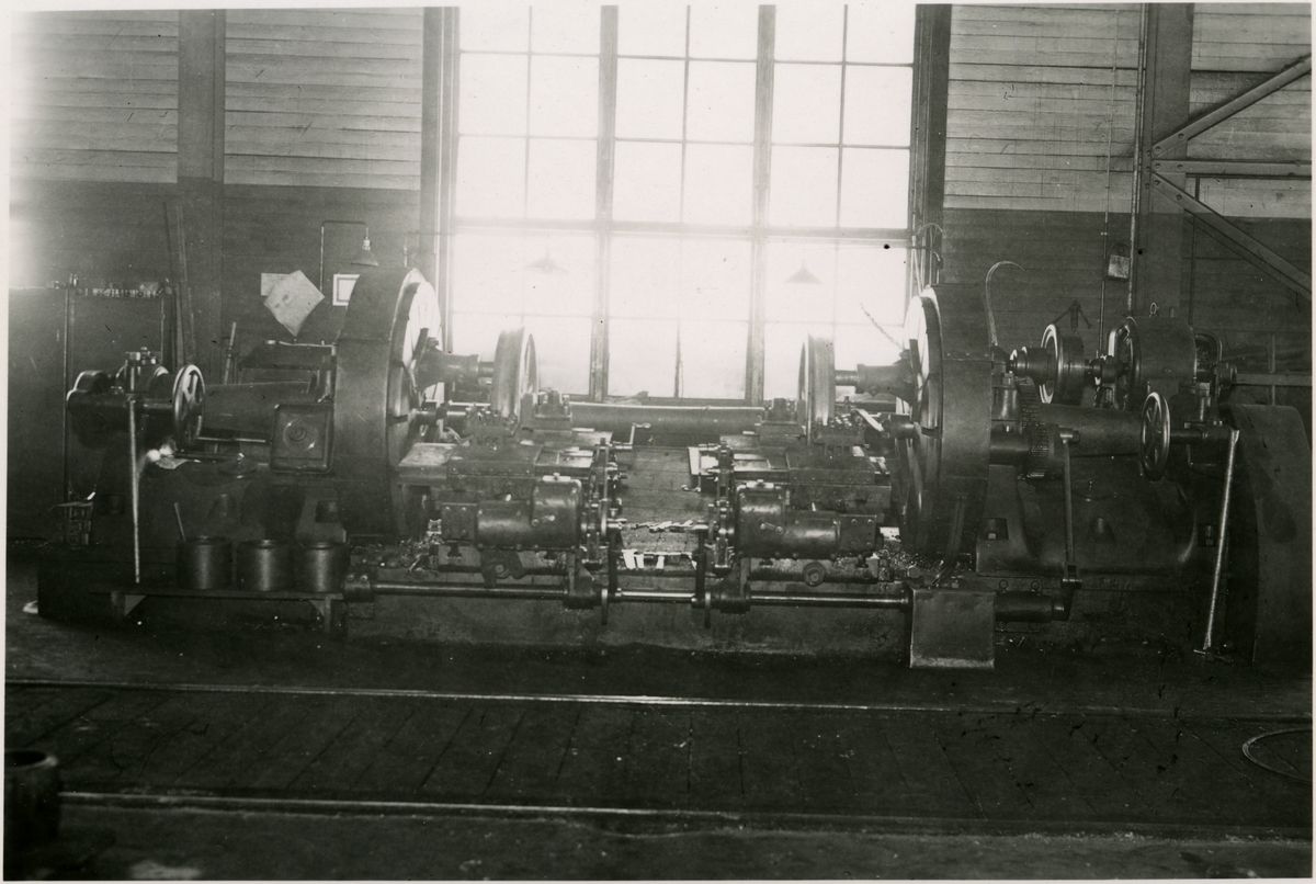 Tomteboda. Statens Järnvägar, SJ. Huvudverkstaden. Hjulrevisionsverkstaden inredd 1930. Hjulsvarv, äldre modell, som gör 1 hjulpar på 55 min.