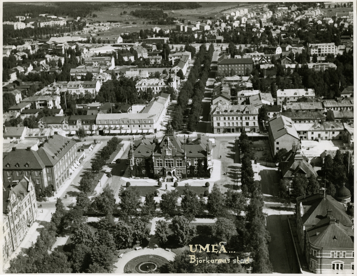 Umeå, stationshuset i bildens överkant vid slutet av allén.