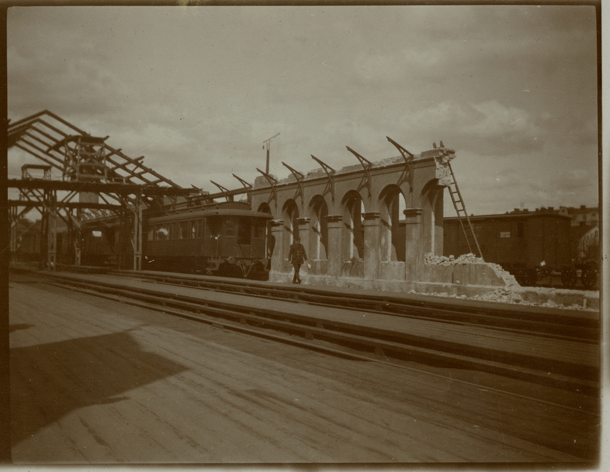 Titel: Rivning av banhallen i Uppsala. Personvagnen är en före detta provmotorvagn nr 1391 eller 1393.
