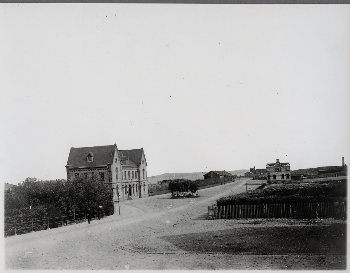 Titel: Varberg station från gatusidan i sitt ursprungliga skick omkring år 1890.