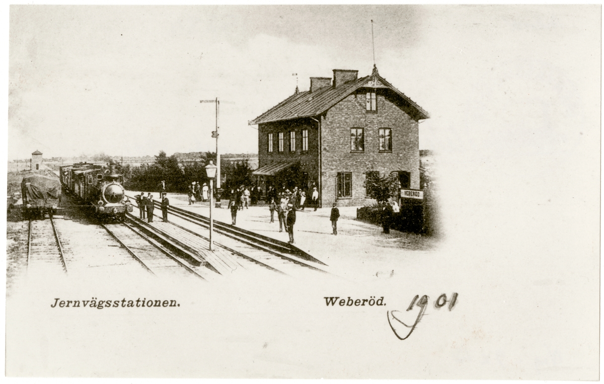 Malmö - Tomelilla Järnväg, MöToJ. personal står på trä perrongen mellan spåren.