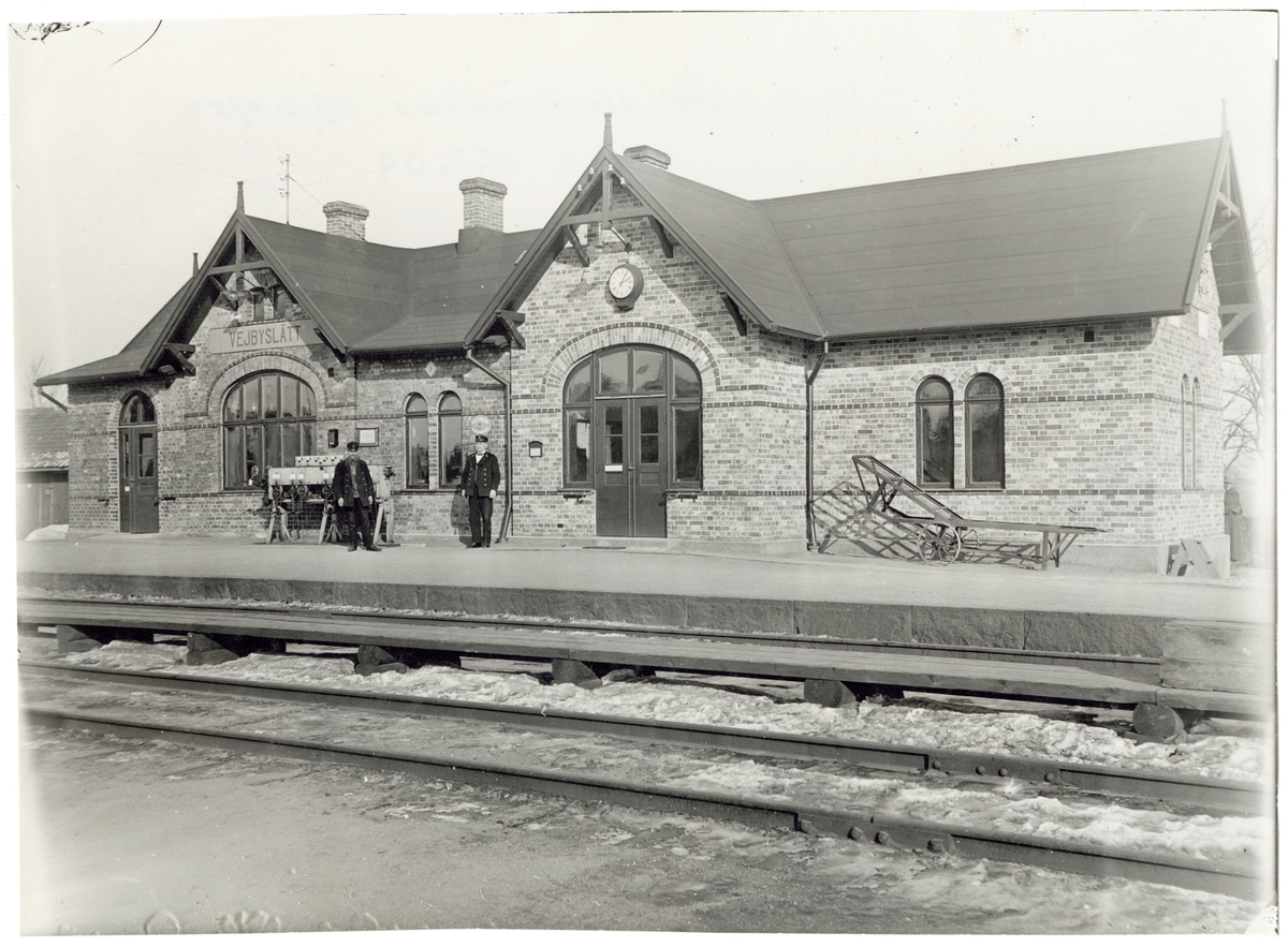 Skåne - Hallands Järnväg, SHJ. Stationen anlades 1885. Stationshusets expeditionslokaler utvidgades och väntsalen moderniserades 1947.