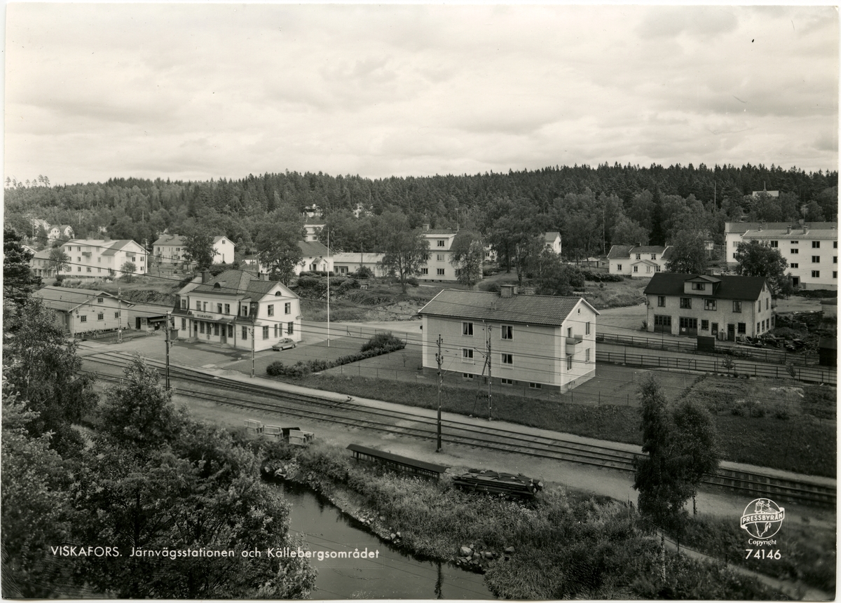 Titel: Viskafors station. Bilen är troligen en Simca Arondes som tillverkades från 1951 till 1964