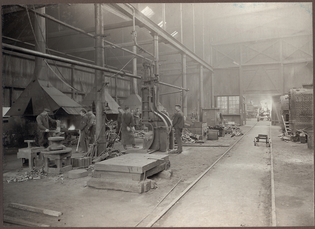 Bergslagernas Järnvägar, BJ verkstad i Åmål. Parti av smedjan.
