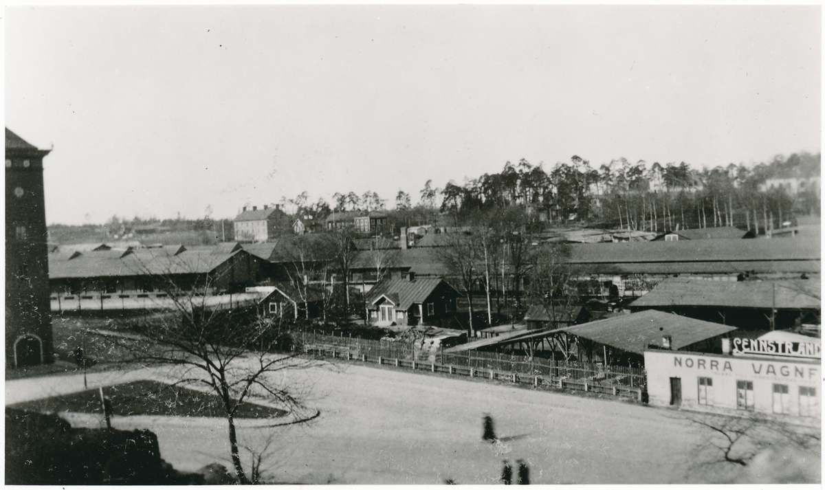 Vy vid Stockholm norra vid Nortull. Man kan skönja ett tågset med blandade godsvagnar i bildens mitt och godsmagasinet till vänster i bilden.