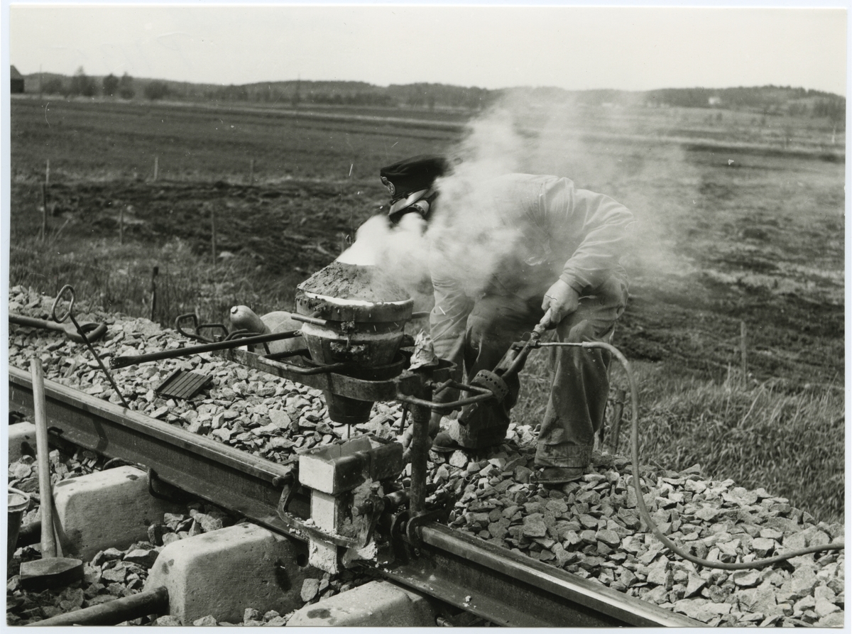 Spårsvetsning vid banläggning, på sträckan Tranås - Gripenberg.