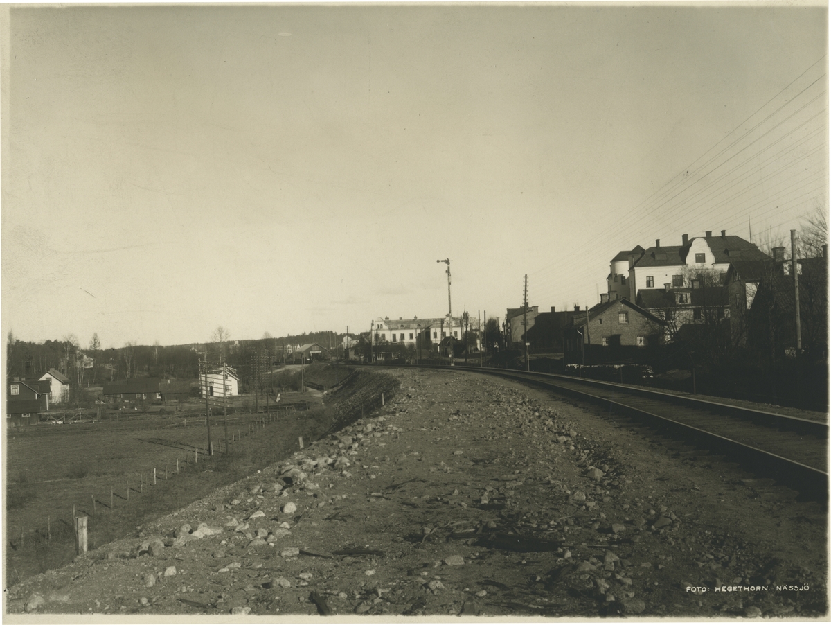 Banvallsutfyllnad för dubbelspår vid Tranås 1925.