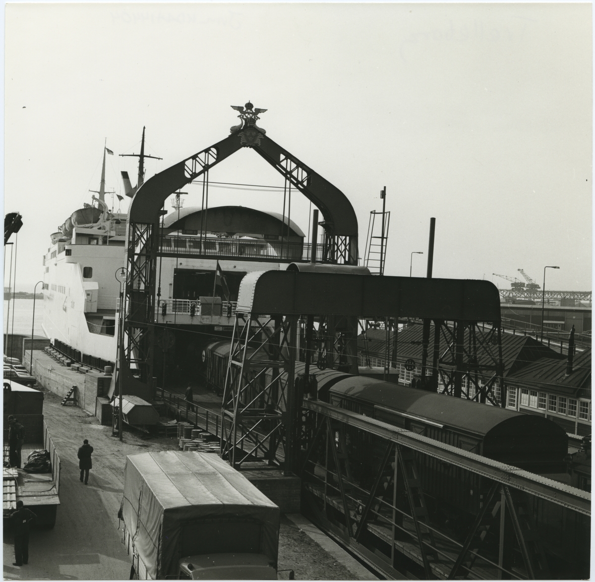 Titel: Lastning av godsvagn på färjan i Trelleborgs färjeläge.