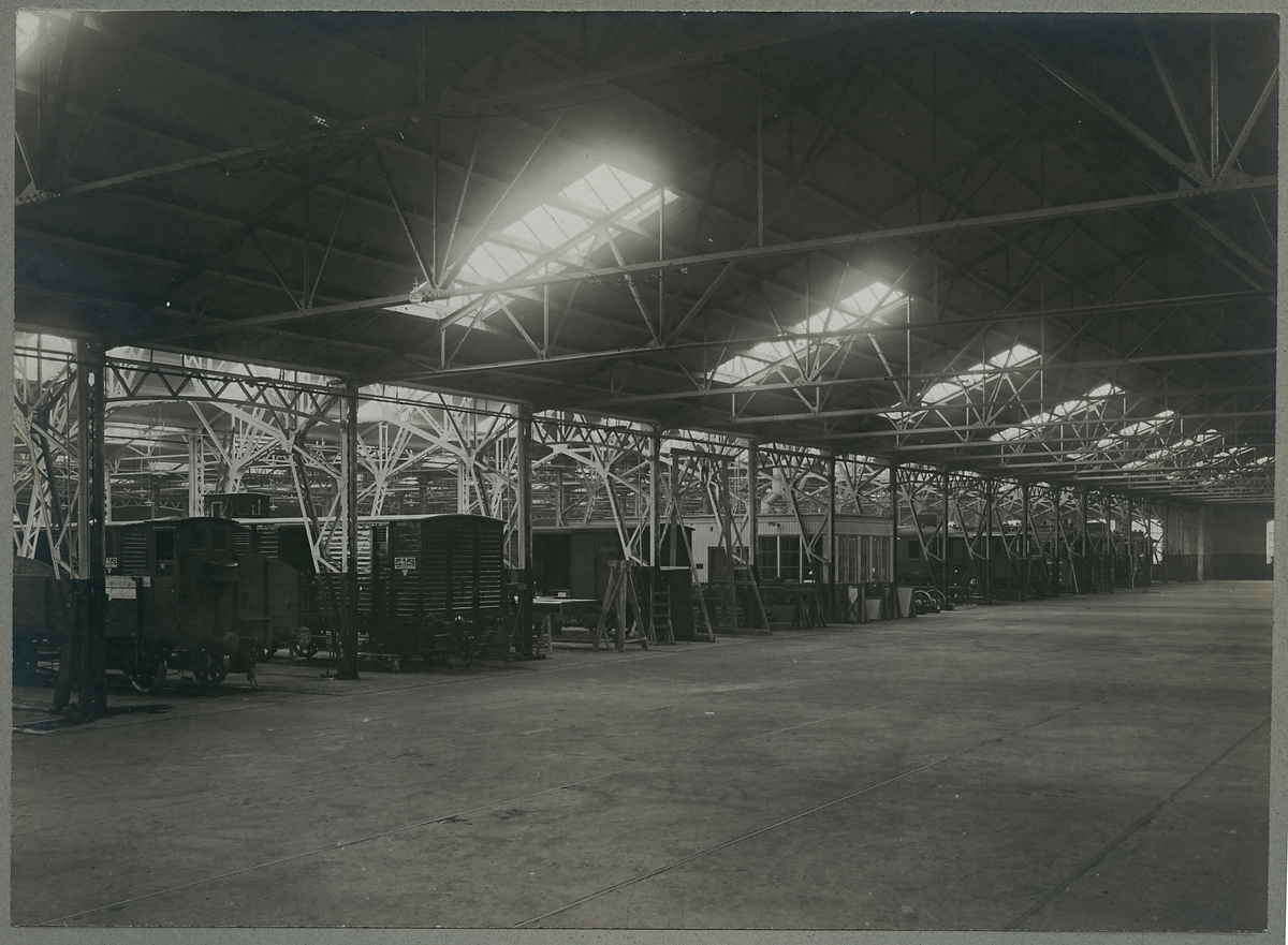 Titel: Interiör av vagnverkstaden vid centralverkstaden i Örebro.