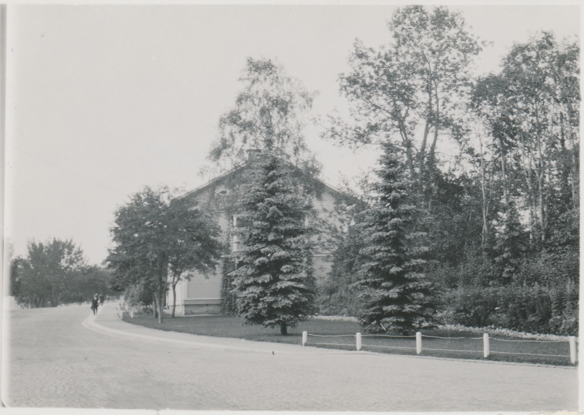 Titel: Trädgård och bostadshus i närheten av stationen.
