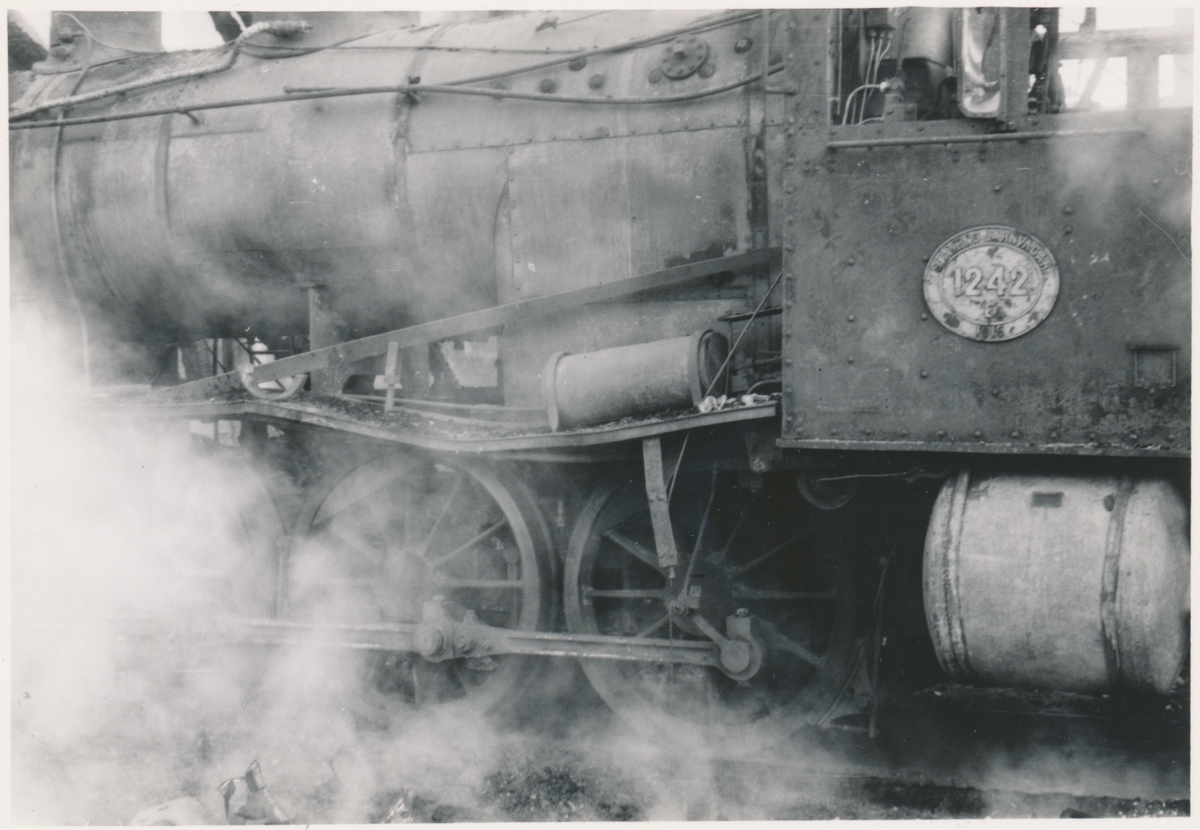 Statens Järnvägar, SJ E2 1242, Tillverkad av Atlas 1915 tillverkningsnummer 163. Brandskadad vid lokstallsbrand.