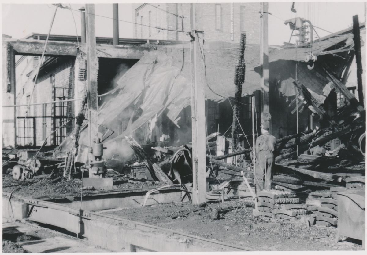 Titel: Lokstall efter branden.