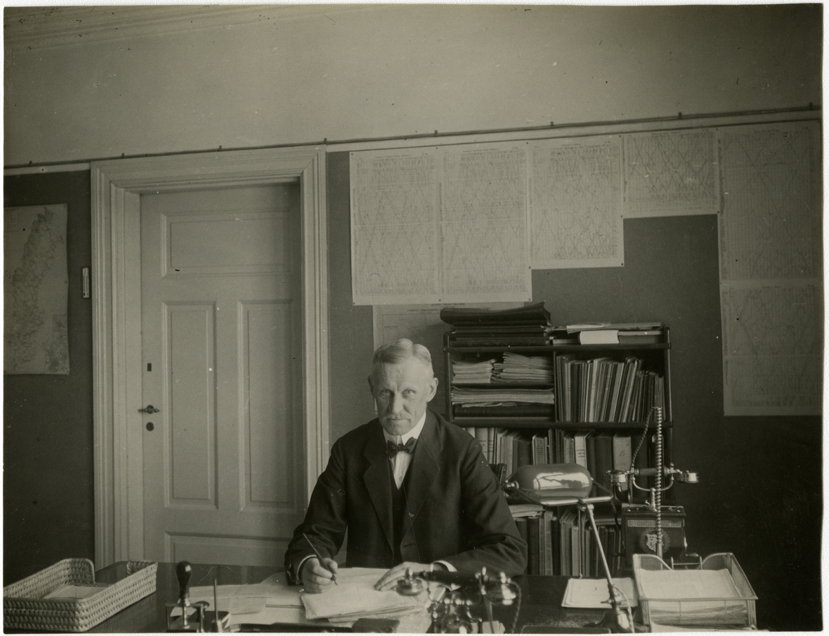 Östersund station. Statens Järnvägar, SJ.13 trafikinspektörsexpeditionen år 1923. Trafikinspektör, Ti O. Brynolf.