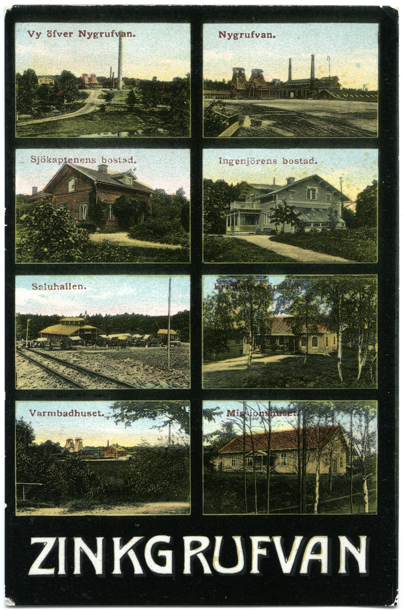 Titel: Vykort på olika byggnader från Zinkgruvan.
