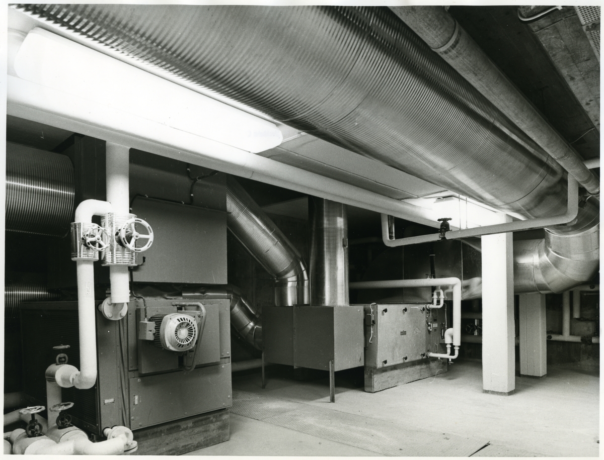 Ett av vagnhallens fyra apparatrum för värmeteknisk utrustning. Ett avisningsaggregat syns till vänster i bild, Hagalund.