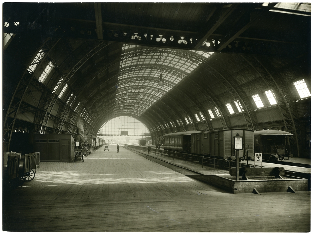 Interiör av banhallen vid Malmö Central. Statens Järnvägar, SJ A 1022.
