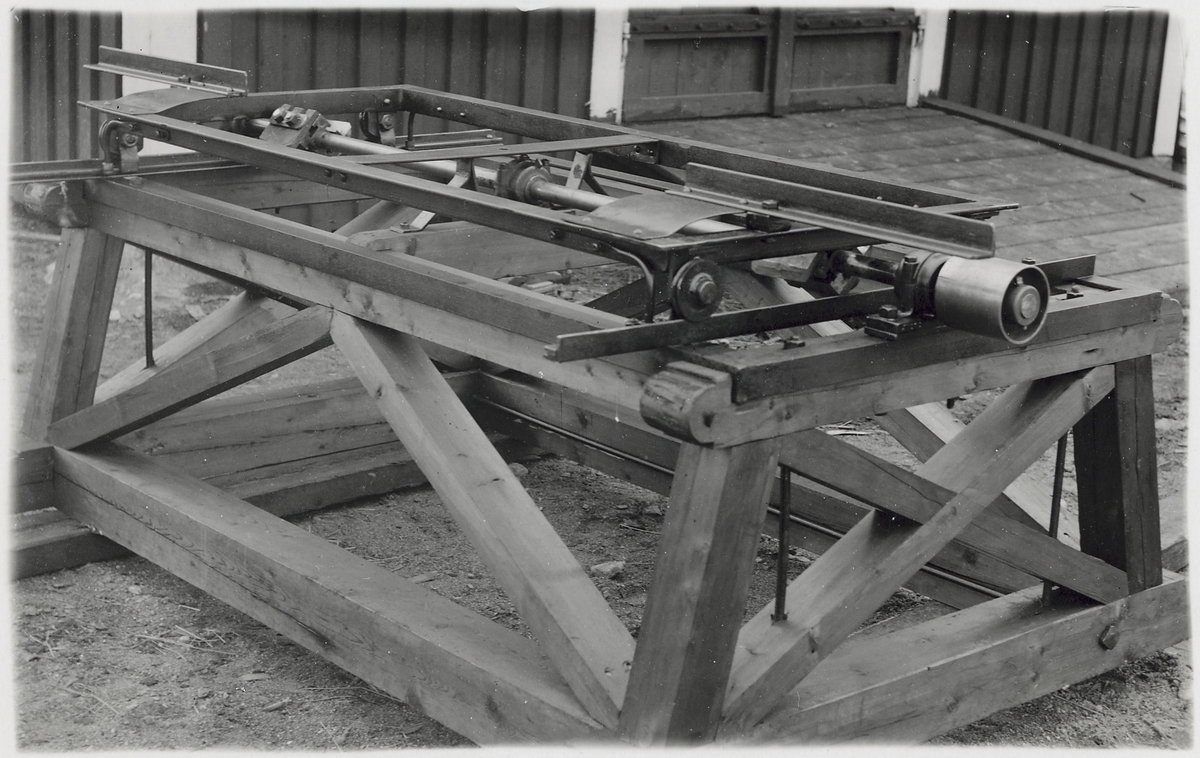 Statens Järnvägar, SJ. Laftmaskin- användes för att slipa och forma slipers. Uppfanns av Arbetschef, C. Wästfelt.
