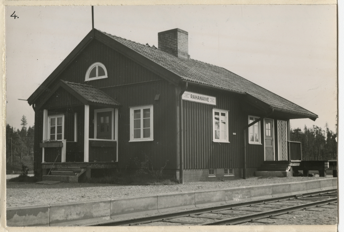 Envåningshus i trä. Hållplats, 1954 rälsbuss hållplats till 1960.