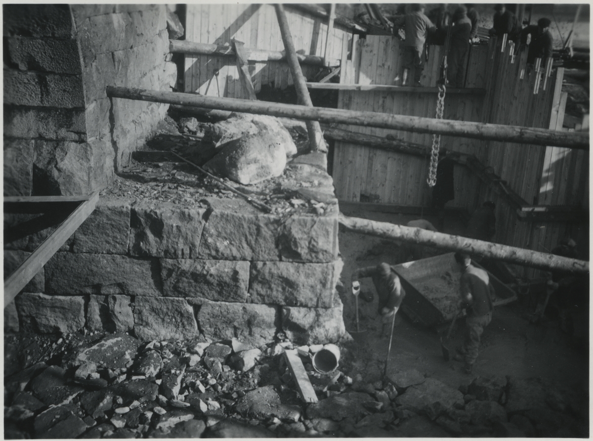 Spåntning och grundgrävning för tillbyggnad av kulvert över Stenhammarsån. På linjen mellan Flen - Sköldinge