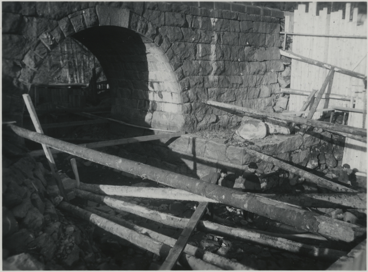 Titel: Grundgrävning för tillbyggnad av kulvert över Stenhammarsån. På linjen mellan Flen - Sköldinge