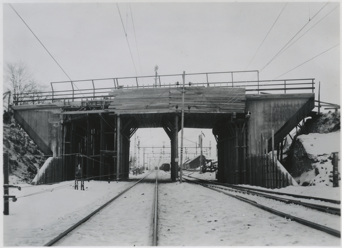 Titel: Vägbro över Valla bangård under byggnadstiden