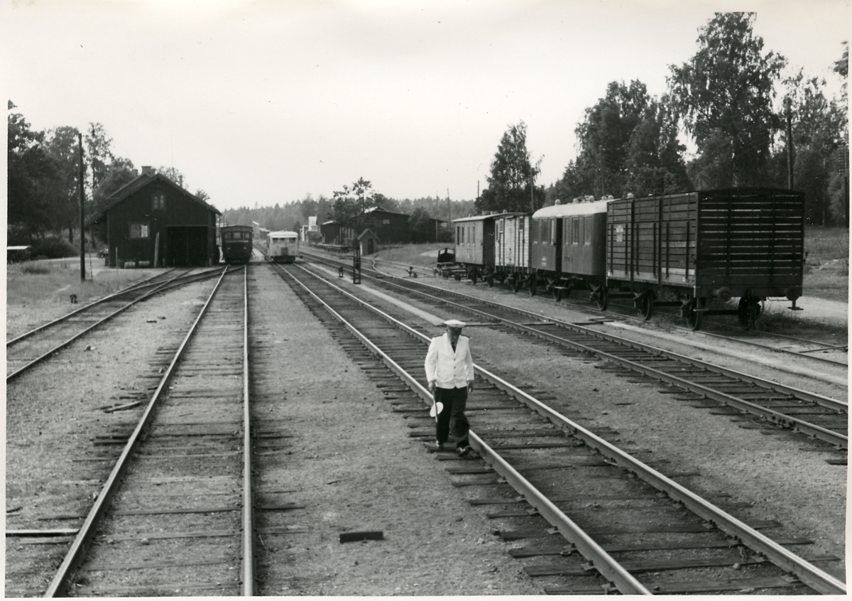 Hälleforsnäs, mot norr. Bilden tagen inför elektrifieringen av Trafikaktiebolaget Grängesberg - Oxelösunds Järnvägar.