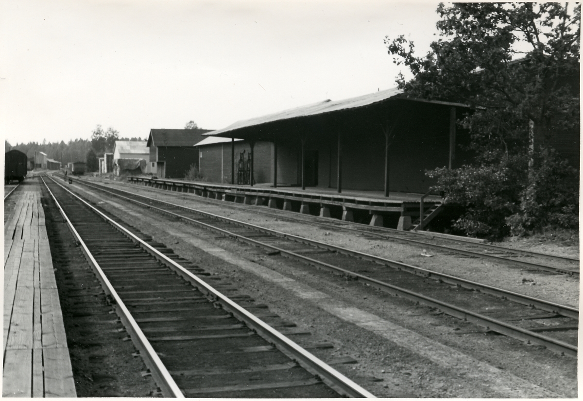 Hälleforsnäs, mot norr. Bilden tagen inför elektrifieringen av Trafikaktiebolaget Grängesberg - Oxelösunds Järnvägar.