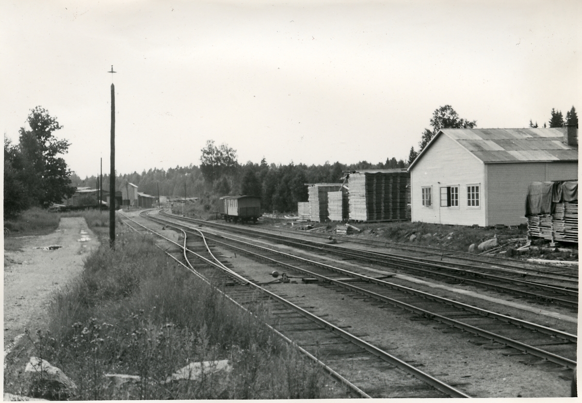 Hälleforsnäs, mot norr. Bilden tagen inför elektrifieringen av Trafikaktiebolaget Grängesberg - Oxelösunds Järnvägar.