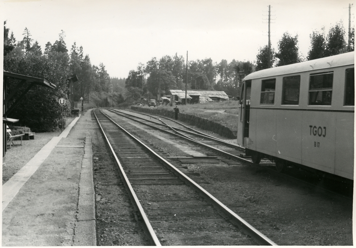 Bälgviken, söderut. Trafikaktiebolaget Grängesberg - Oxelösunds Järnvägar, TGOJ Yo8 17. Bilden tagen inför elektrifieringen av Trafikaktiebolaget Grängesberg - Oxelösunds Järnvägar.