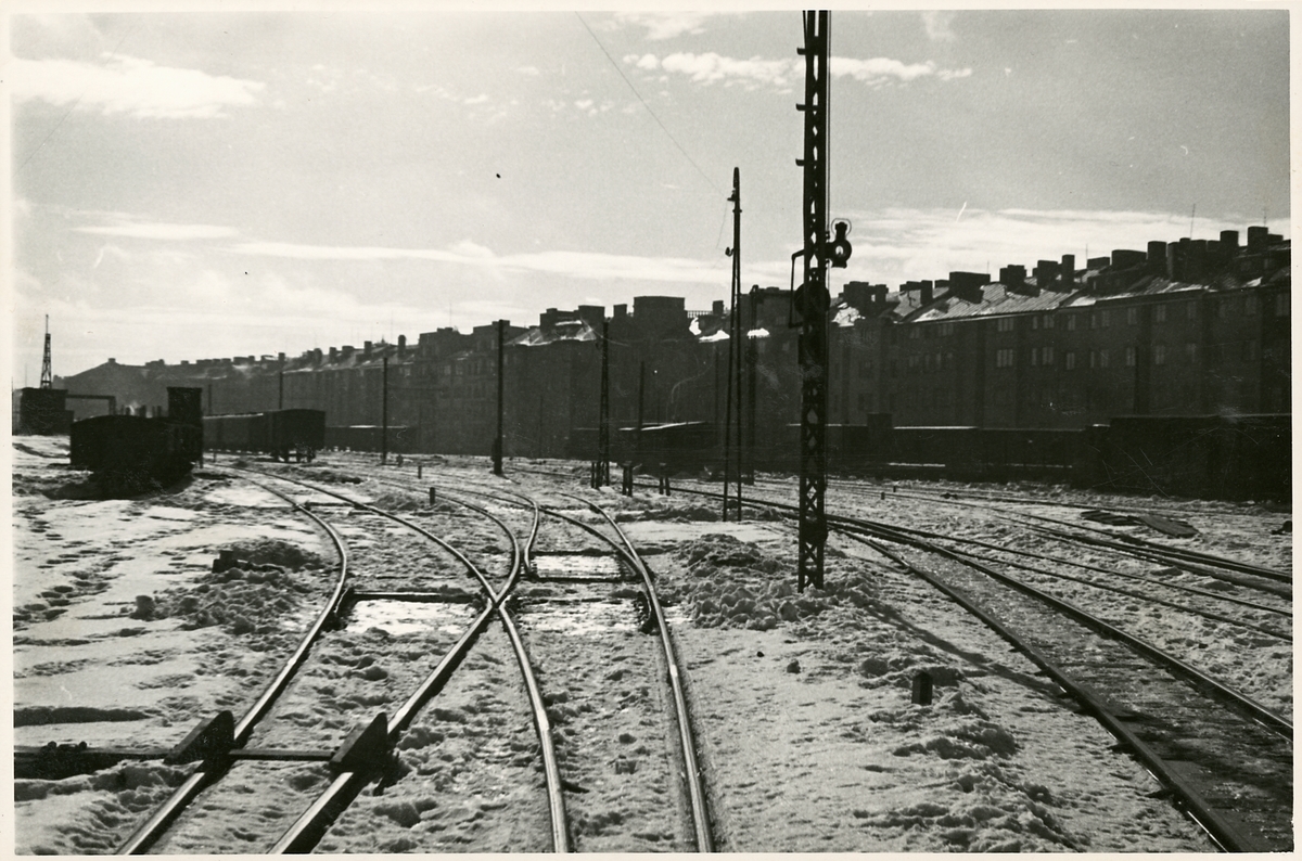Titel: Bangården vid Stockholm Östra inför elektrifieringen.