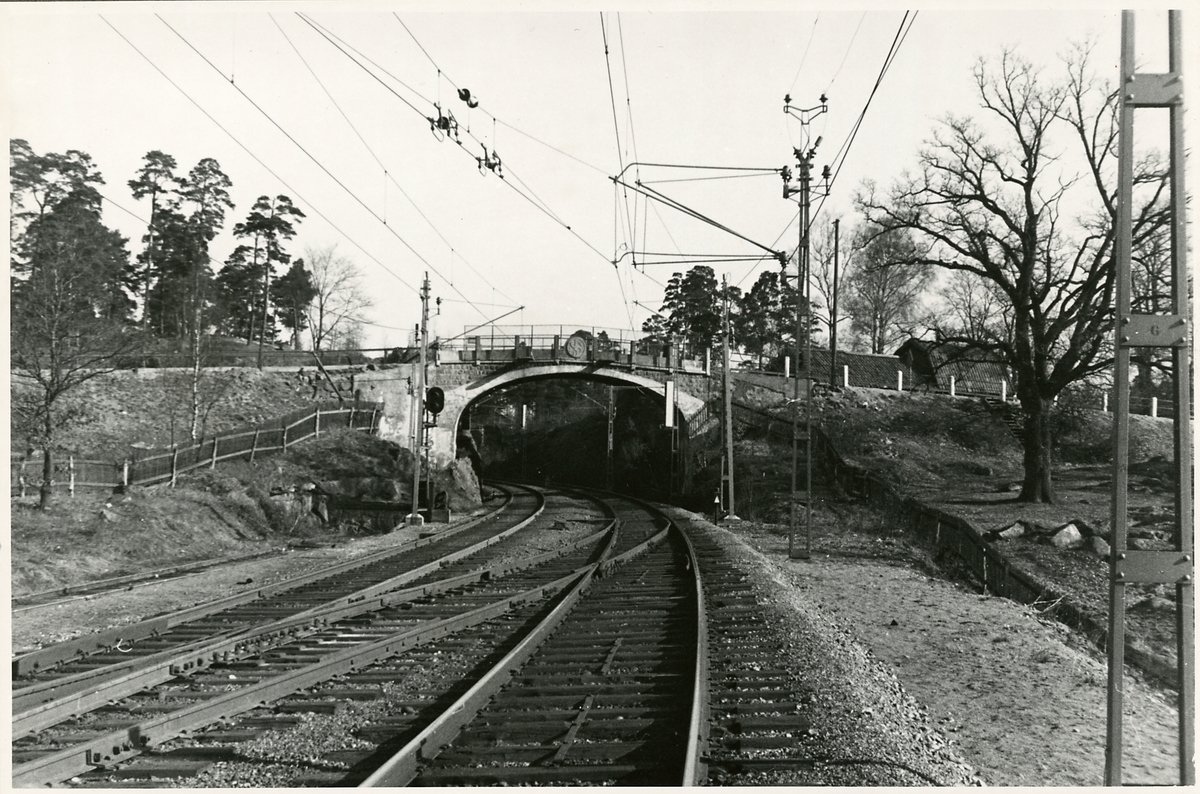 Titel: Bro över järnvägen strax utanför Älvsjö station.