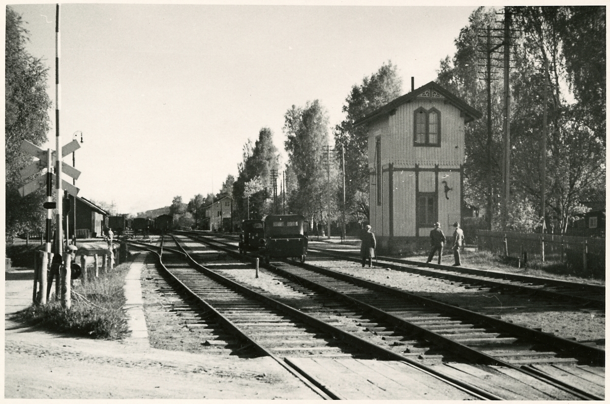 Inspektion inför elektrifieringen, här på bangården vid Arbrå station.
