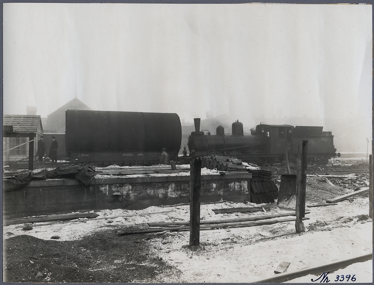 Eslöv, provning av bjälklag över tunneln. Statens Järnvägar, SJ Kd 633. Statens Järnvägar, SJ CFb 1041.