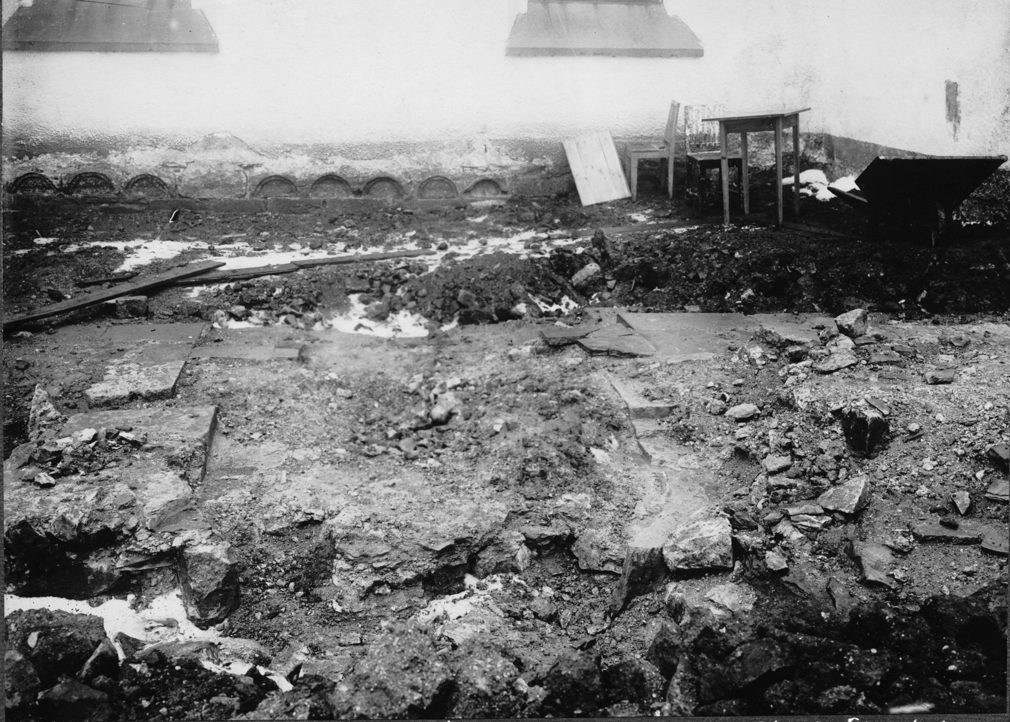 Utgrävning, öster om nuvarande östgaveln.