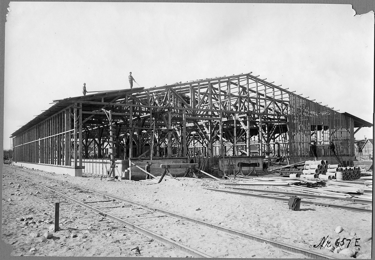 Titel: Gods och omlastningsmagasinet under uppbyggnad.