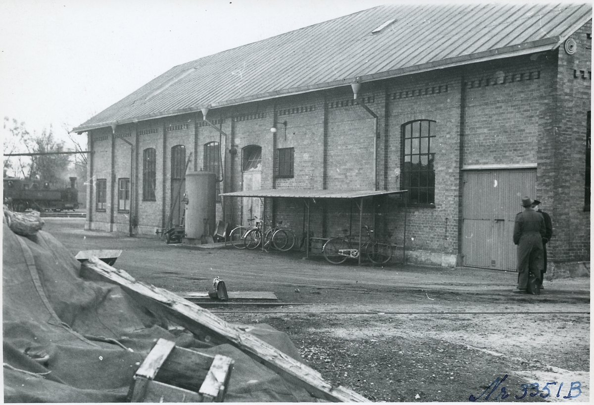 Kristianstad verkstadsbyggnad, rälsbussverkstad. Ånglok Statens Järnvägar, SJ.