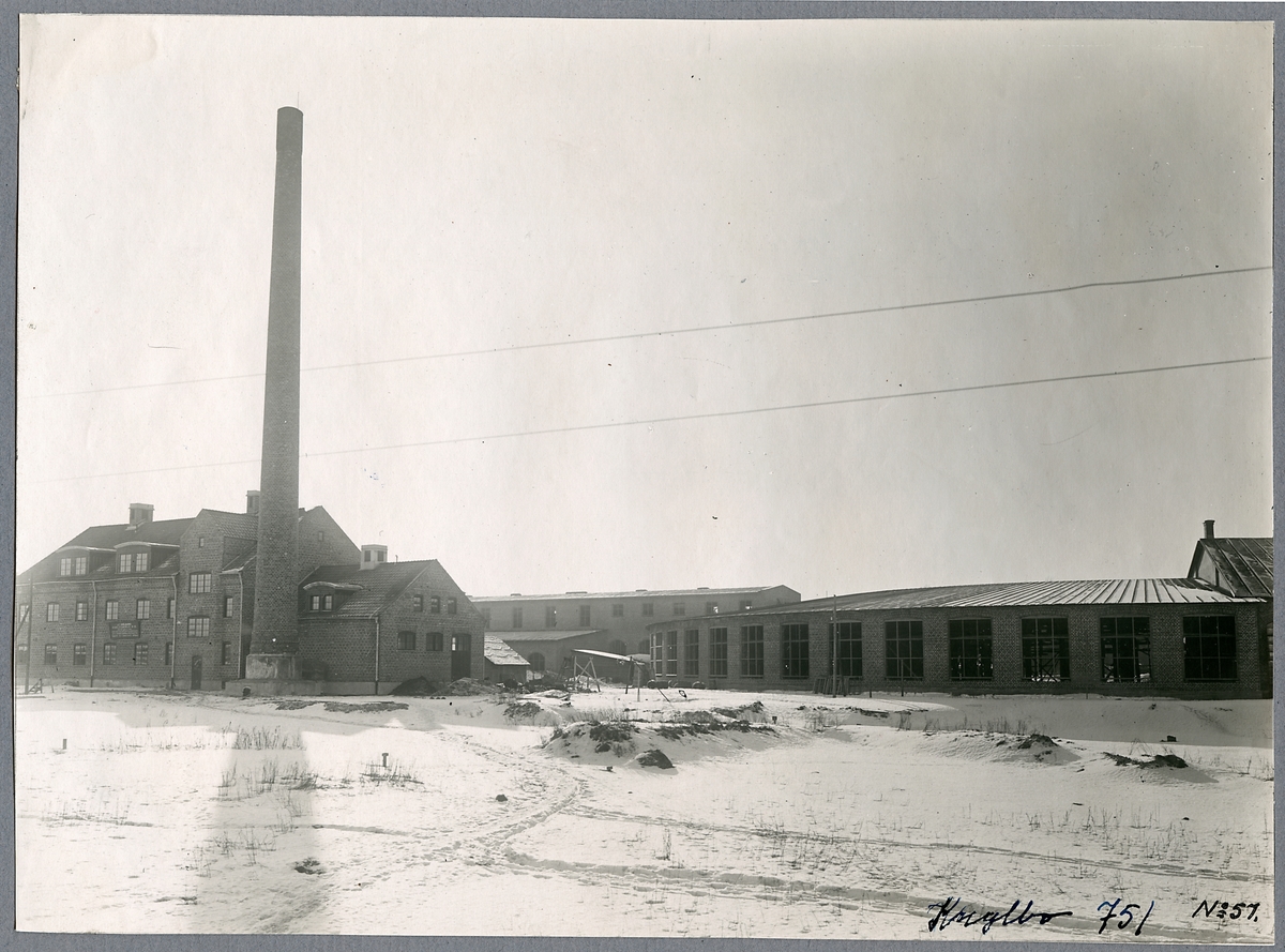 Lokomotivstallar, verkstadsbyggnad och överliggninghus.