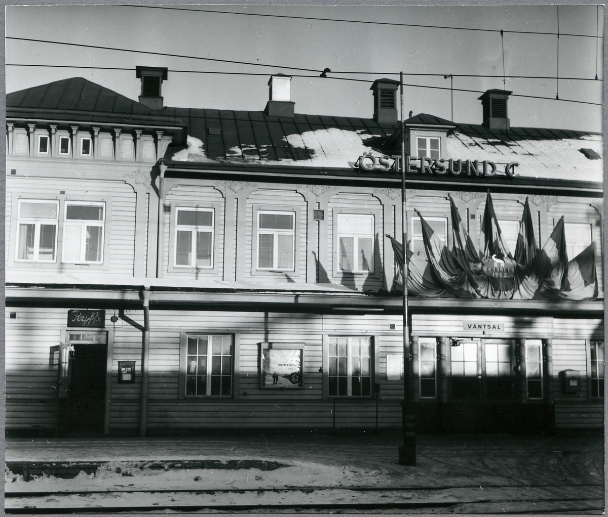 Del av fasaden, med ingång mot väntsalen på Östersunds Central från banhållet.