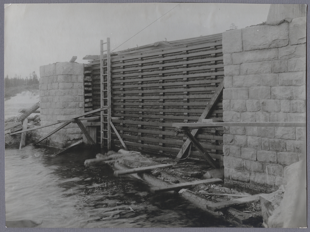 Titel: Porjus kraftverk i Stora Luleälv under byggnation. Vid utloppet.
